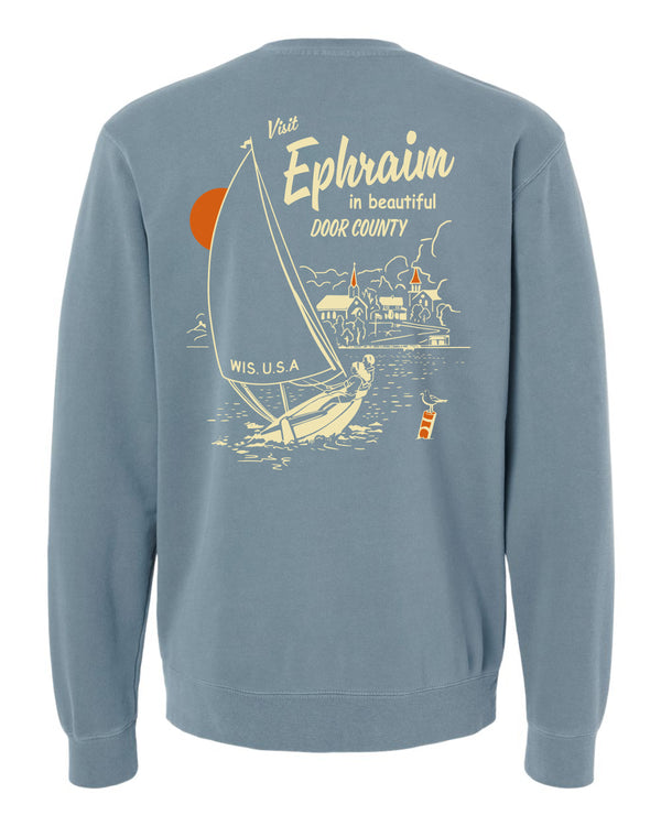 Why You'll Love It: This sweatshirt not only showcases your love for Ephraim but also offers a comfortable and stylish way to celebrate one of Door County’s most scenic villages. Perfect for locals, visitors, and anyone who cherishes the nautical beauty of Door County.